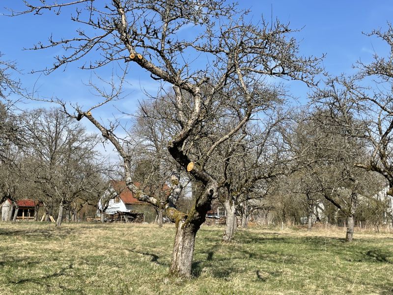 Streuobstwiesen gehören zu den artenreichsten Lebensräumen unserer Kulturlandschaft – und prägen wie kaum ein anderer Lebensraum das Bild des Oberpfälzer Juras. Zahlreiche Streuobstbestände wurden im Projekt bereits systematisch erfasst und bewertet. Für jeden Standort werden individuelle Pflege- und Entwicklungskonzepte erstellt, die Schritt für Schritt umgesetzt werden, um wertvolle Lebensräume langfristig zu sichern und miteinander zu vernetzen. Die Juradistl-Naturschutzprodukte wie Juradistl-Schafwollpellets zur ökologischen Düngung und Juradistl-Apfelsaft in der kleinen Flasche repräsentieren als Botschafter den Biotopverbund auf den schafbeweideten Magerrasen sowie den Streuobstwiesen.