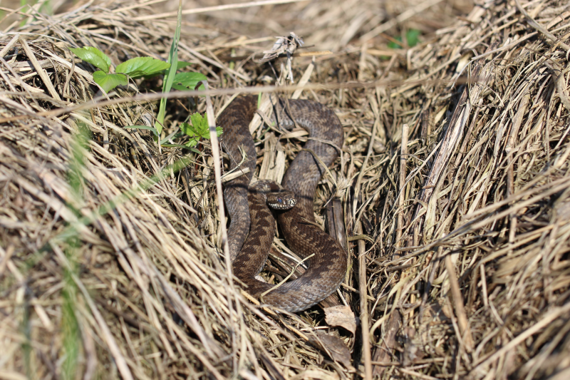 Durch Information der Öffentlichkeit funktioniert Freizeitnutzung auch bei Anwesenheit von Kreuzottern; Foto: Dr. Stefan BögerZusammen mit den Projektpartnerinnen und -partnern konnten die Flächen durch Umstellung der Unterhaltungspflege über den Projektverlauf immer weiter aufgewertet werden. Dort sind inzwischen sogar einige Arten der Roten Liste zu finden. Die Umstellung von Mulchen auf Mahd mit Entfernung des Mahdguts sowie weitere Maßnahmen mit fachlicher Begleitung durch die RMfr führen zu einer deutlichen Aufwertung der Flächen. Durch ein Monitoring werden die Erfolge der aktuellen Maßnahmen dokumentiert, überprüft und gegebenenfalls angepasst, um den Biotopverbund in Bayern weiter auszubauen.