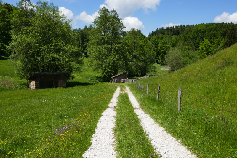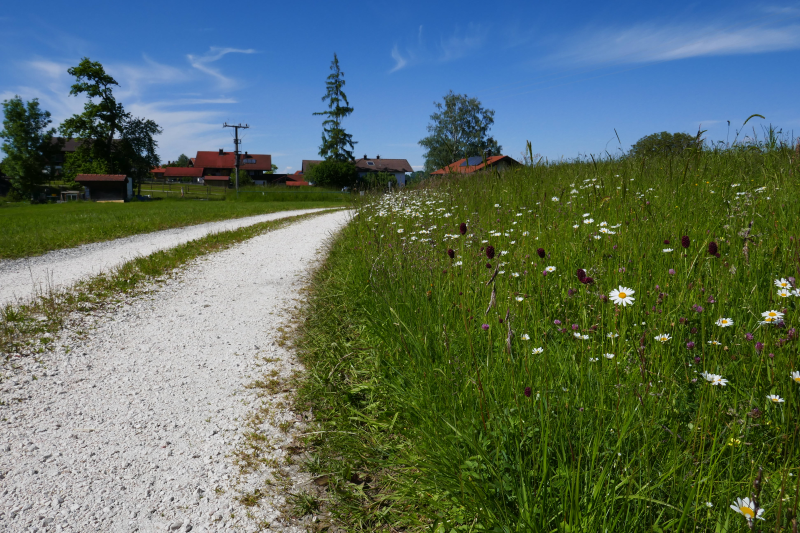Unbefestigte Wege und ihre Rand- und Mittelstreifen können – richtig gepflegt – erfolgreich zur Biotopvernetzung beitragen; Foto: Wolfgang Schuardt, Traunstein