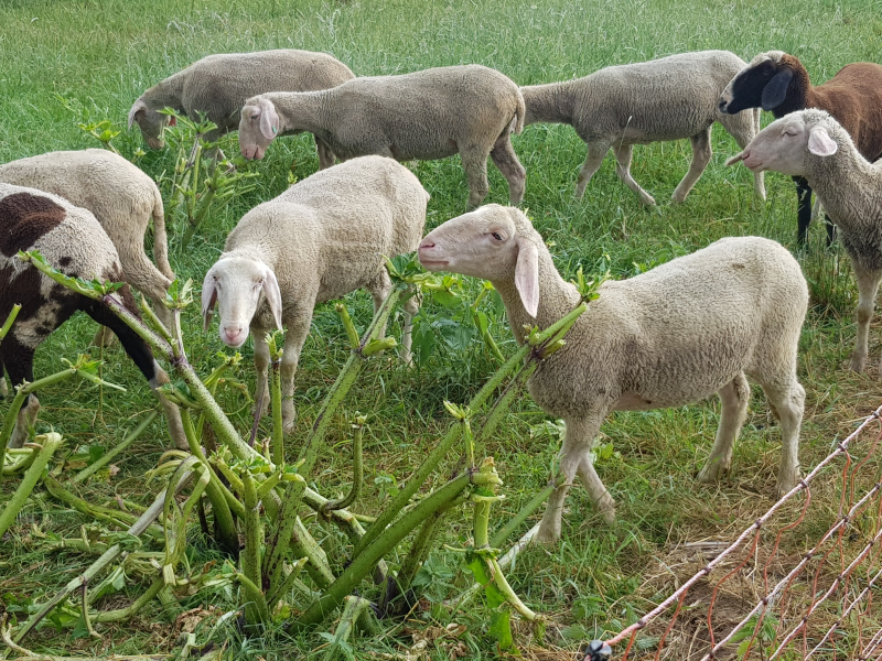 Im Landkreis Eichstätt werden große Riesenbärenklau-Vorkommen beweidet und dadurch artenreiche Offenlandstandorte als Lebensräume für Insekten und Brutvögel wiederhergestellt. Seit 2020 werden verschiedene Fläche mit Schafen und Ziegen beweidet. Ein Monitoring begleitet die extensive Beweidung und erfasst die Auswirkungen auf Vegetation und das Samenpotential im Boden.