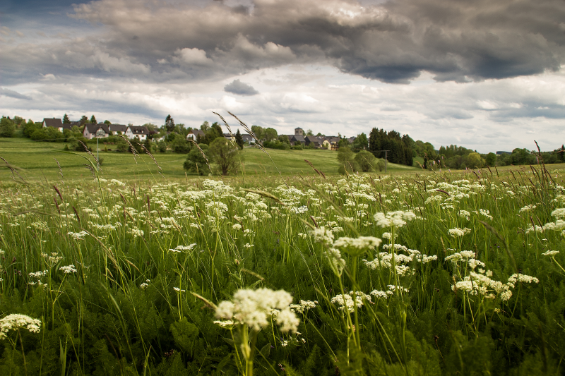 In der Teuschnitz-Aue im Naturpark Frankenwald unterstützten die Naturpark-Ranger eine nachhaltige Bewirtschaftung. Dies ist in dem sensiblen Wiesengebiet wichtig, um den Lebensraum für seltene Pflanzen und Tierarten zu erhalten. Neben der Abstimmung eines Mahdkonzepts mit den Landnutzern ist auch die Information der Besuchenden des Auengebiets für den Erhalt der Biotopqualität entscheidend. Ein Monitoring des Braunkehlchens überprüft den Erfolg der Maßnahmen.