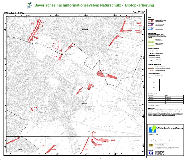 Aus Gründen der besseren Übersicht und Lesbarkeit zeigen die TK25 nur die Biotopabgrenzungen, nicht aber die Biotopnummern. Diese sind nur in den Flurkarten enthalten.
