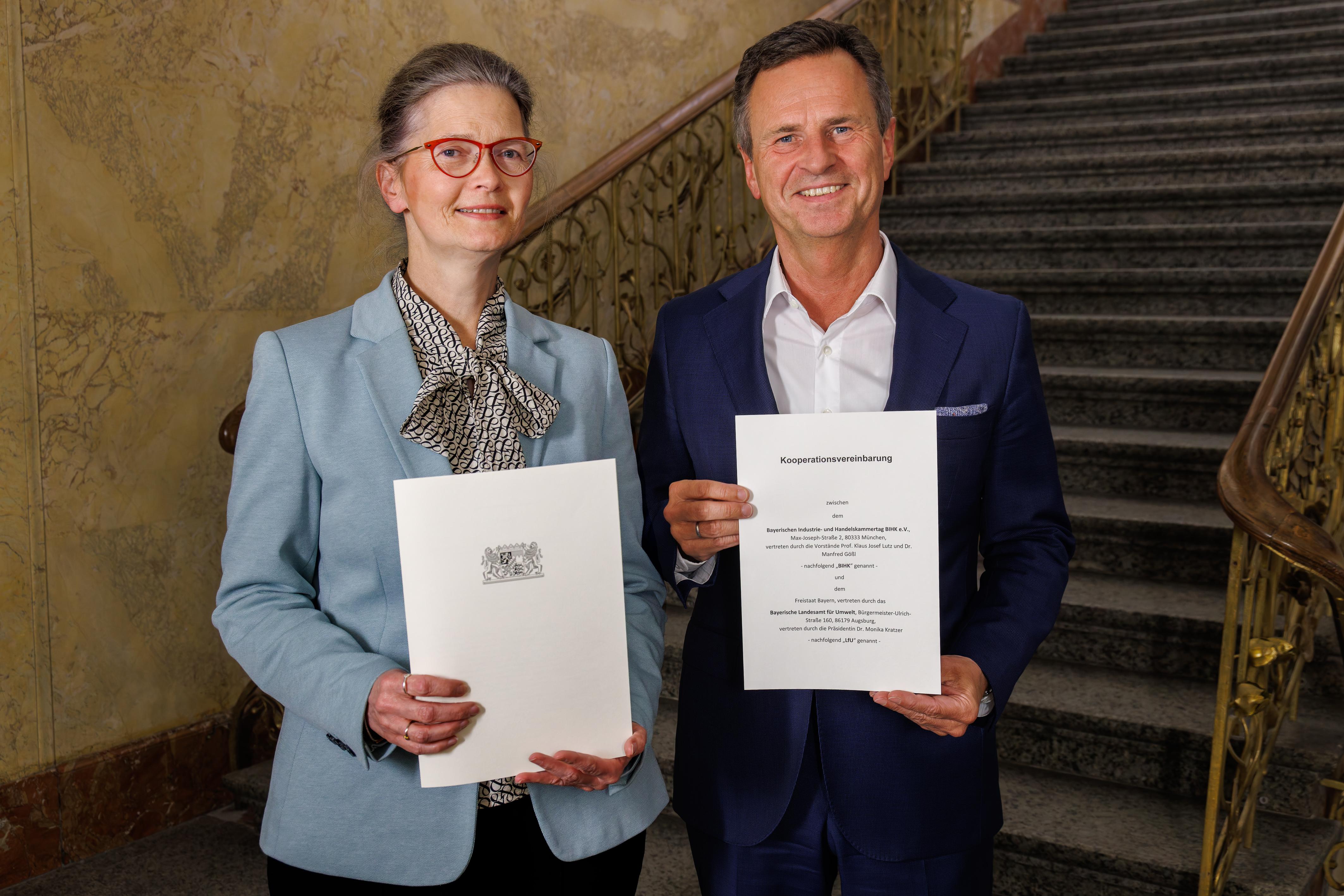 Dr. Monika Kratzer (Präsidentin LfU) und Dr. Manfred Gößl (BIHK-Hauptgeschäftsführer) mit erneuertem Kooperationsvertrag
