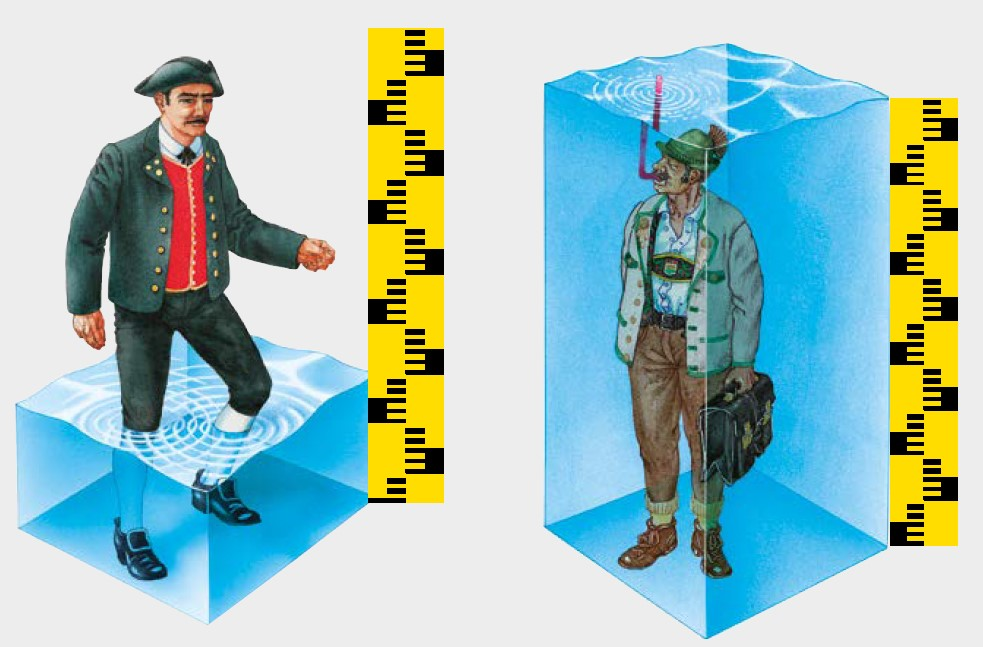 Das Bild mit dem Mann, der mit einem Schnorchel im Wasser steht, zeigt dir den Jahresniederschlag in Oberbayern. Das ist im Süden von Bayern. Bekannte Städte in Oberbayern sind München oder Ingolstadt.