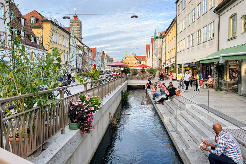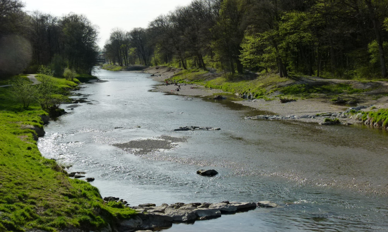 Sie biegen von der lauten Hauptstraße in eine verkehrsberuhigte Seitengasse ein und auf einmal weht Ihnen ein kühler Windstoß entgegen. Vor Ihnen taucht aus dem Untergrund ein kleiner Bach auf, der bisher im Verborgenen floss und erst vor Kurzem wieder freigelegt wurde. Nun durchzieht er wie ein grün-blaues Band die graue Kulisse der Stadt. Bäume stehen in unregelmäßigen Abständen entlang des Ufers und spenden Schatten. Im Hintergrund führt eine kleine Brücke über das Gewässer und Kinder schauen über das Geländer ins klare Wasser auf der Suche nach vorbeischwimmenden Fischen.