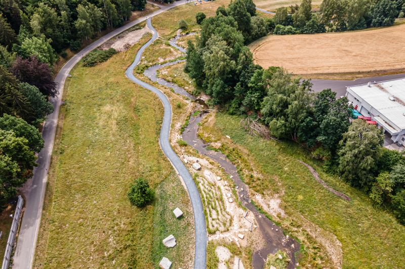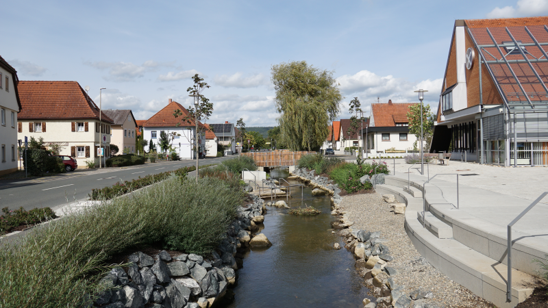Neue Mitte von Altenkunstadt mit renaturierter Weismain; Foto: www.illusion-studio.de, Sebastian FischerSIELDUNGSNAH: Freiraum – Ort der Erholung und zum Abschalten vom Alltag