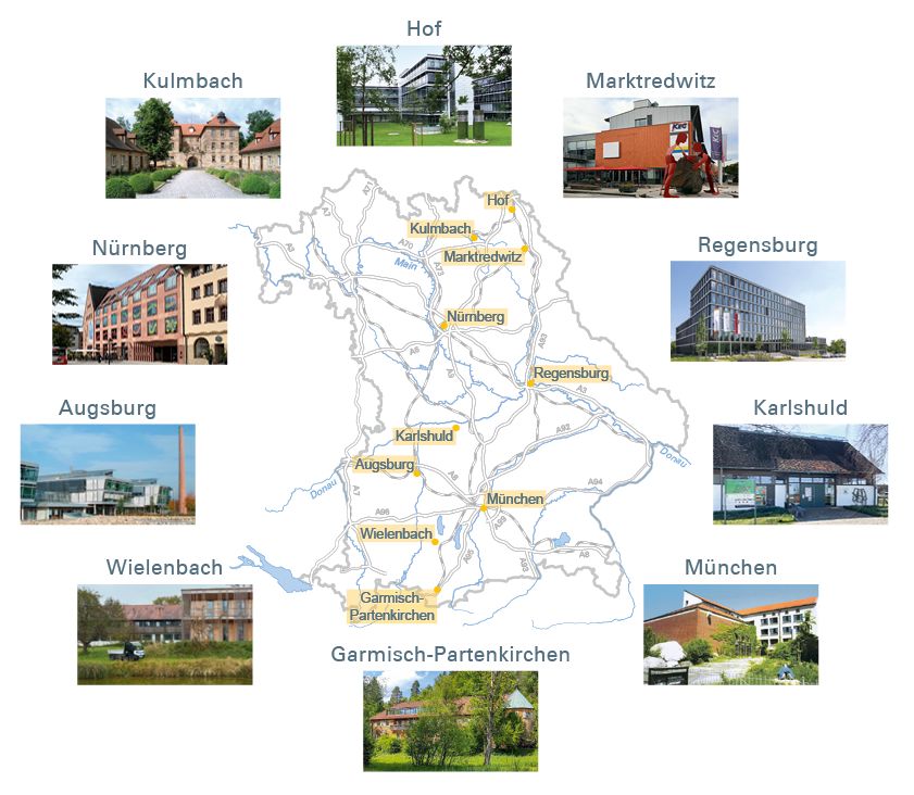 An zehn verschiedenen Orten haben wir neun Dienststellen und zwei Projektbüros. Der LfU-Hauptsitz ist in Augsburg, die zweitgrößte Dienststelle ist in Hof.